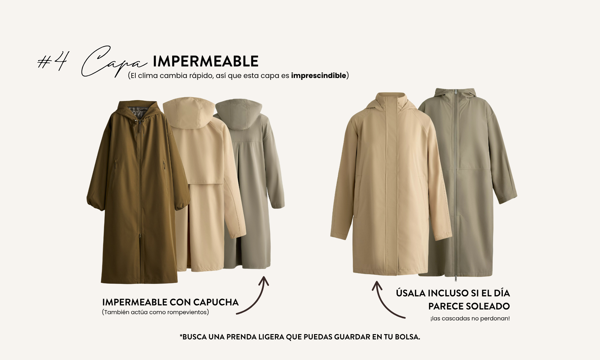 💡 El secreto está en sentirte ligera, pero protegida. No se trata de llevar muchas prendas, sino de elegir las adecuadas.